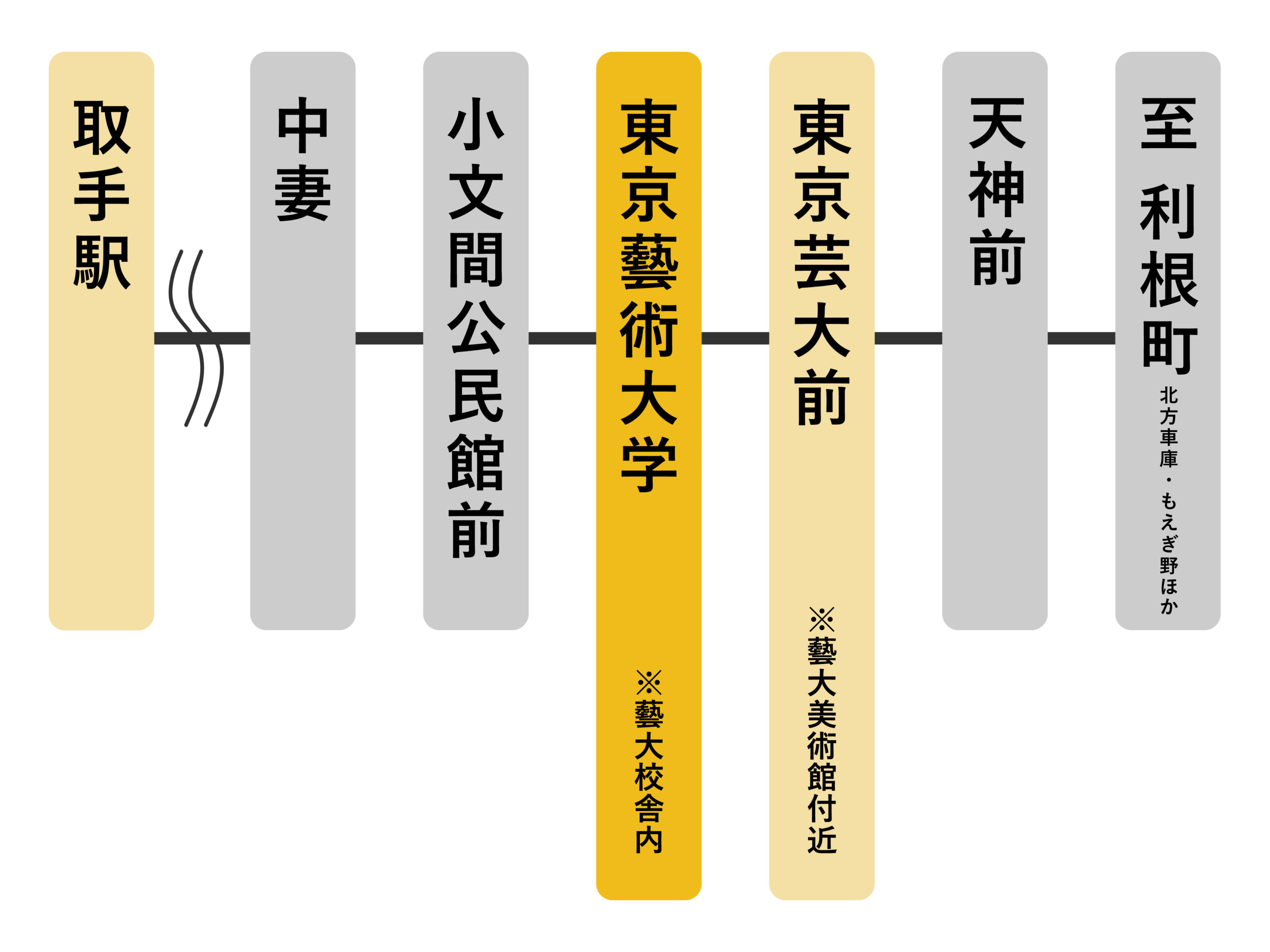 ・取手藝祭会場内(工房・メディア棟・専門教育棟・藝大食堂最寄り):「東京藝術大学下車